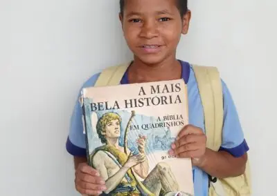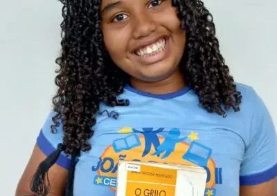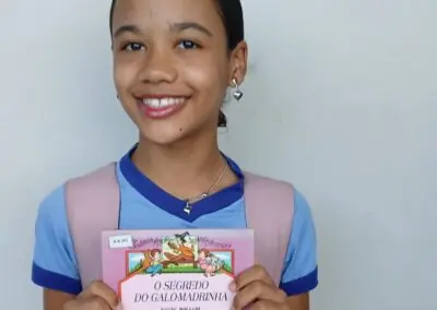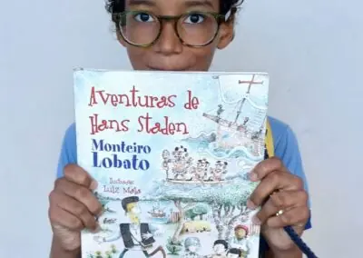 Some of the students choose classics of children’s literature, such as “Vito Grandam” by Ziraldo; “A Traça Escritora” by Sandra Aymone; “O Moleiro e Seus Amigos”, adapted by Eliane Silva, and “As Aventuras de Hans Stalen” by Monteiro Lobato, among many others. In addition to the classics, some children ventured into more challenging readings, such as “The Environmental Revolution” by Michael Silverstein and “Encyclopedia of Contemporary Psychology” by Lannoy Dorin.