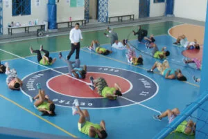 Academia comunitária, que acontece logo de manhã, aberta para as mulheres da comunidade: uma forma para disponibilizar a estrutura do Centro Educativo João Paulo II em prol do bem estar da comunidade.